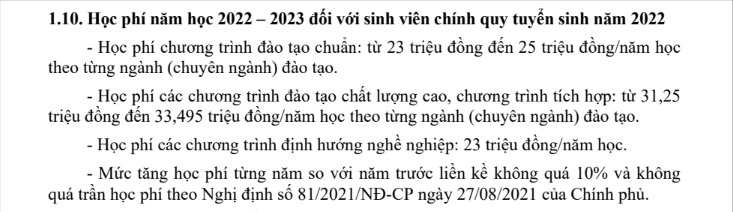 Học phí năm 2022 cũng phản ánh sự đa dạng trong các chương trình đào tạo của trường. Điều này cho phép sinh viên có nhiều lựa chọn phù hợp với khả năng tài chính và định hướng học tập của mình. Mức tăng học phí hàng năm thường nằm trong khoảng từ 5% đến 10%, giúp nhà trường duy trì chất lượng giảng dạy và cơ sở vật chất.