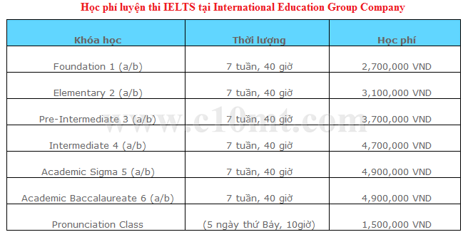 ACET được biết đến là trung tâm có mức học phí cao hơn mặt bằng chung một chút, nhưng bù lại chất lượng giảng dạy và chương trình học rất bài bản, phù hợp với những bạn muốn đầu tư nghiêm túc cho việc luyện thi IELTS. Học phí trung bình cho một khóa học tại đây rơi vào khoảng 18 – 19 triệu đồng, tương đương khoảng 180.000 VNĐ mỗi giờ học.