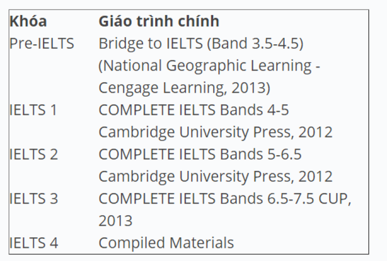 Ngoài ra, trung tâm còn có khóa Pre IELTS với mức học phí khoảng 5.800.000 đồng, bao gồm 30 tiết học với giáo viên bản ngữ và 60 tiết với giáo viên Việt Nam. Điều này giúp học viên có nhiều cơ hội tiếp xúc và luyện tập tiếng Anh hiệu quả hơn.