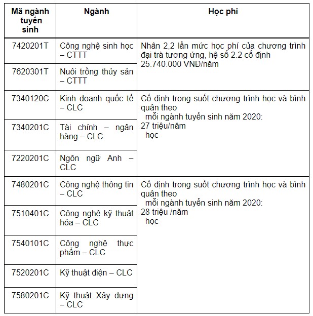 Ngoài ra, Đại học Cần Thơ cũng áp dụng mức học phí theo năm học cho chương trình thạc sĩ là khoảng 26.800.000 đồng, hoặc tính theo tín chỉ với mức 890.000 đồng/tín chỉ. Nếu sinh viên cần học bổ sung kiến thức để đủ điều kiện dự tuyển thạc sĩ, mức học phí bổ sung tối đa là 600.000 đồng/tín chỉ.