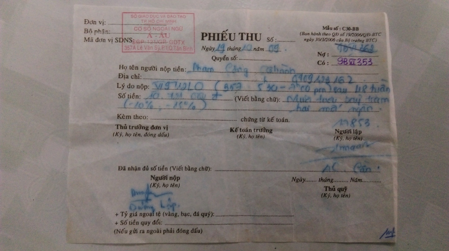 Việc thanh toán học phí thường được thực hiện theo từng khóa học hoặc theo từng đợt học cụ thể, tùy theo quy định của trung tâm. Trung tâm Anh ngữ Việt Mỹ luôn đảm bảo quy trình này minh bạch, rõ ràng, giúp học viên yên tâm tập trung vào việc học. Đội ngũ nhân viên thân thiện, nhiệt tình cũng sẵn sàng hỗ trợ bạn trong suốt quá trình đăng ký và thanh toán, tạo cảm giác gần gũi và chuyên nghiệp.