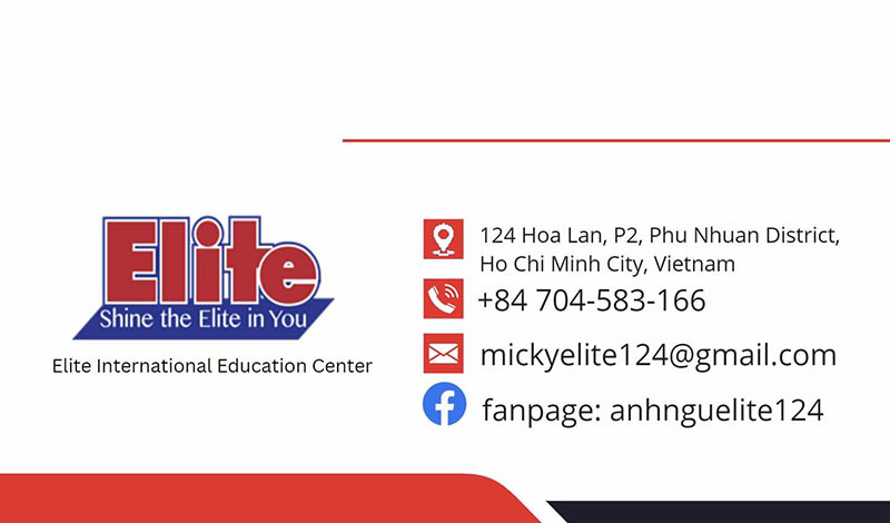 Elite còn có các chương trình học tiếng Anh chuyên ngành, giúp học viên chuẩn bị tốt cho công việc hoặc môi trường làm việc quốc tế. Học viên sẽ được học cùng giáo viên bản xứ và giáo viên Việt Nam, đảm bảo chất lượng giảng dạy và phát triển kỹ năng toàn diện. Đây là lựa chọn phù hợp cho những ai muốn nâng cao trình độ tiếng Anh một cách bài bản và hiệu quả.