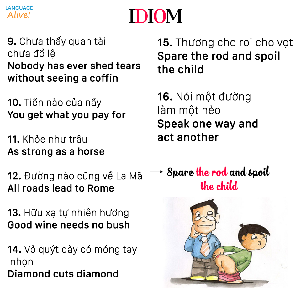 Học thành ngữ cũng giống như học một ngôn ngữ mới; có đôi khi bạn sẽ thấy “easier said than done” khi cố gắng sử dụng chúng. Một số thành ngữ cổ điển như “seeing is believing” hay “never offer to teach fish to swim” chứa đựng những bài học cuộc sống sâu sắc. Bạn nên dành thời gian để tìm hiểu và thực hành, bởi vì chúng thực sự quý giá trong việc nâng cao kỹ năng giao tiếp của bạn!