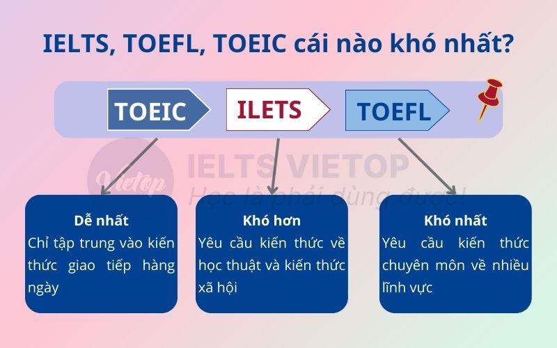Khi so sánh độ khó giữa IELTS và TOEIC, có thể thấy rõ sự khác biệt trong mục đích và cấu trúc của hai bài thi này. IELTS được thiết kế chủ yếu cho mục đích học thuật, vì vậy nó yêu cầu thí sinh có khả năng phân tích và tổng hợp thông tin, đặc biệt là ở phần Writing. Nhiều học viên cho rằng IELTS khó hơn do đề thi bao gồm nhiều kỹ năng khác nhau như nghe, nói, đọc và viết.