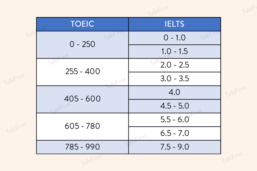 Điểm số cũng là một yếu tố quan trọng trong việc phân biệt hai bài thi. Điểm TOEIC thấp hơn sẽ tương đương với điểm IELTS thấp hơn. Học viên thường đạt mức điểm từ 5.5 đến 7.0 trong IELTS, tương đương với 605-780 điểm TOEIC. Do đó, nếu bạn không thực sự cần sử dụng tiếng Anh trong một môi trường học thuật, TOEIC có thể là lựa chọn hợp lý hơn.