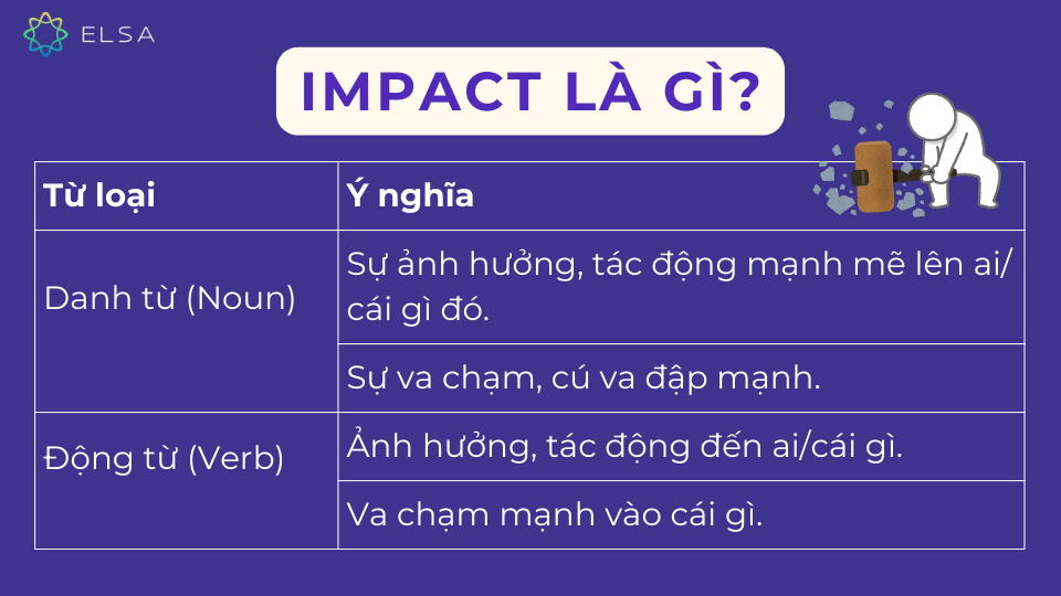 Trong tiếng Anh, việc sử dụng đúng giới từ sau các danh từ và động từ là vô cùng quan trọng để diễn đạt ý nghĩa chính xác. “Impact” là một từ phổ biến, dùng để nói về tác động, ảnh hưởng lên sự vật, hiện tượng hay con người nào đó. Tuy nhiên, không phải ai cũng nắm rõ “impact đi với giới từ nào” và ý nghĩa cụ thể khi đi kèm từng giới từ. Bài viết này sẽ giúp bạn hiểu rõ các trường hợp “impact” đi với giới từ như “on”, “to”, “upon”, ý nghĩa khi kết hợp, cách sử dụng trong câu, ví dụ minh họa, phân biệt với các từ đồng nghĩa và một số lưu ý khi sử dụng.
