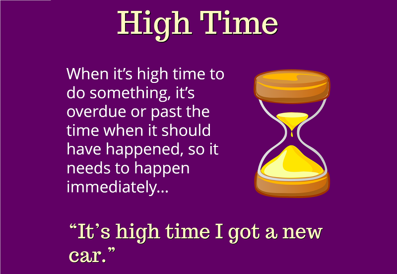 “It’s high time” là một cụm từ trong tiếng Anh thường được sử dụng khi chúng ta cảm thấy rằng đã đến lúc cần phải hành động hoặc thực hiện một việc gì đó. Cấu trúc này mang ý nghĩa nhắc nhở, khuyến khích, và thường được dùng khi một việc gì đó đã bị trì hoãn quá lâu.