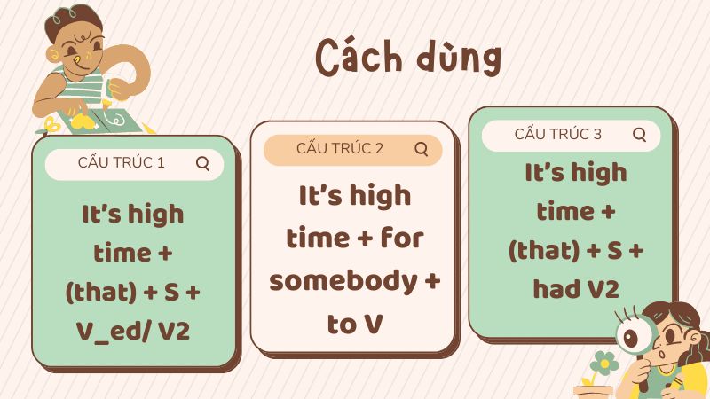 Cấu trúc “It’s high time” trong tiếng Anh thường được sử dụng để nhấn mạnh rằng đã đến lúc cần thực hiện một hành động nào đó, đặc biệt khi hành động này đã bị trì hoãn quá lâu. Theo cấu trúc này, chúng ta sẽ sử dụng thì quá khứ, ví dụ: “It’s high time you started studying.” Điều này ngụ ý rằng việc học đã nên được bắt đầu từ lâu, và giờ đây là thời điểm chín muồi để hành động.