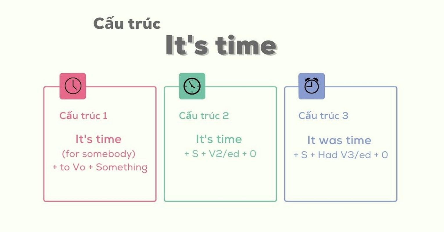 Ngoài ra, khi bạn gặp tình huống mà một hành động đã lẽ ra nên được hoàn thành từ trước, bạn có thể sử dụng cấu trúc “It was time + S + had + V3/ed” để nhấn mạnh sự cần thiết của việc đó. Dù đơn giản nhưng “It’s high time” thực sự là một công cụ hữu ích để thể hiện mong muốn và khuyến khích người khác hành động.