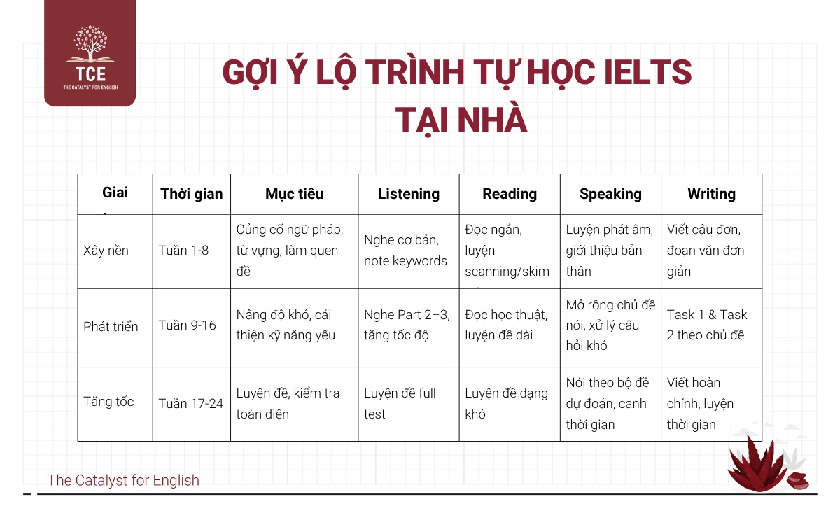 IELTS là kỳ thi tiếng Anh quan trọng, mở ra nhiều cơ hội học tập và làm việc trong môi trường quốc tế. Tuy nhiên, không phải ai cũng có thời gian hoặc điều kiện để theo học tại các trung tâm luyện thi. Vì vậy, tự học IELTS tại nhà đang trở thành lựa chọn của nhiều người, đặc biệt là các bạn học sinh, sinh viên và người đi làm bận rộn. Bài viết sau sẽ giúp bạn hiểu rõ lộ trình tự học IELTS, các phương pháp, tài liệu cần thiết cũng như những kinh nghiệm, lời khuyên hữu ích để bạn có thể tự tin chinh phục IELTS ngay tại nhà.