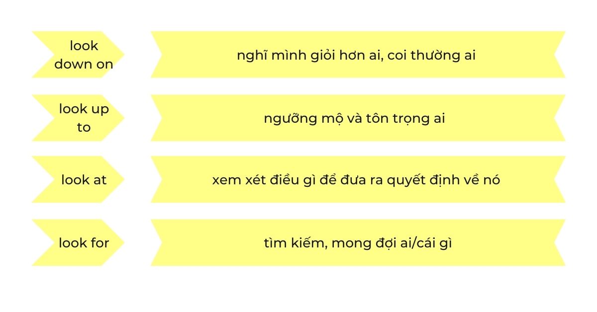 Ngoài ra, có nhiều cụm động từ khác với “look” như “look after” để chỉ hành động chăm sóc người khác, hay “look up to” diễn tả sự ngưỡng mộ đối với một ai đó. Việc nắm rõ các cụm động từ này không chỉ giúp bạn giao tiếp hiệu quả hơn mà còn nâng cao kỹ năng học tiếng Anh.