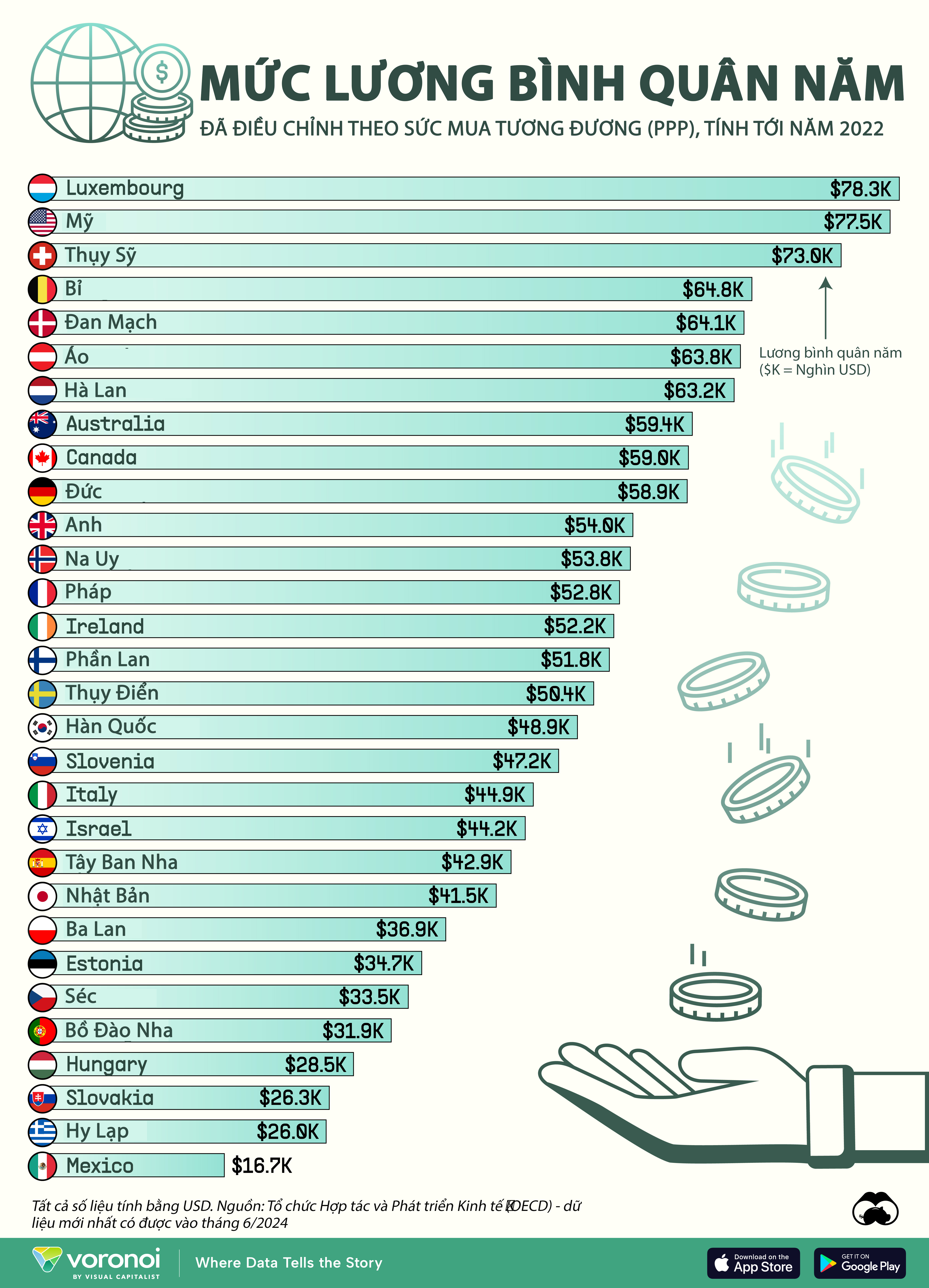 Mức lương trung bình ở Mỹ luôn là chủ đề thu hút sự quan tâm của nhiều người, đặc biệt đối với những ai có ý định sinh sống, học tập hoặc làm việc tại quốc gia này. Mức lương không chỉ phản ánh sức mạnh kinh tế mà còn cho biết chất lượng cuộc sống, khả năng chi tiêu cũng như sự công bằng trong xã hội. Vậy lương trung bình ở Mỹ là bao nhiêu? Những yếu tố nào ảnh hưởng và sự khác biệt về lương giữa các ngành nghề, khu vực ra sao? Bài viết sau sẽ giúp bạn hiểu rõ hơn về bức tranh thu nhập tại Mỹ qua nhiều góc độ khác nhau.