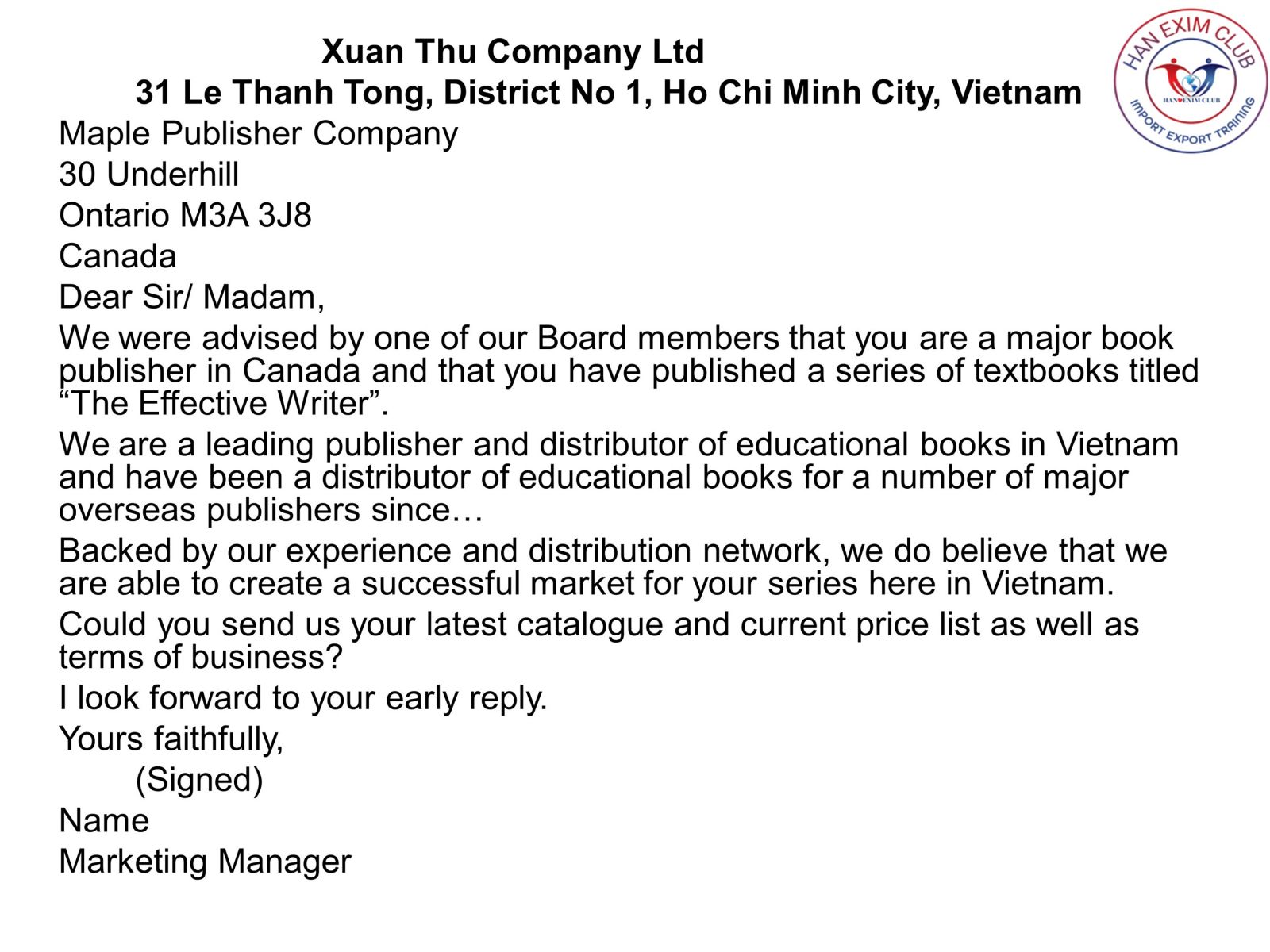 Khi viết một mẫu thư chào giá chuyên nghiệp bằng tiếng Anh, sự chú ý đến từng chi tiết là rất quan trọng. Mở đầu thư, bạn nên sử dụng lời chào trang trọng như “Dear (Mr/Ms) [Tên người nhận]” hoặc “Dear Sir/Madam” để tạo ấn tượng tốt. Tiếp theo, hãy giới thiệu ngắn gọn về bản thân và công ty của bạn, ví dụ: “My name is Minh, and I am contacting you from ABC Company.” Điều này giúp người nhận làm quen với bạn ngay từ đầu.