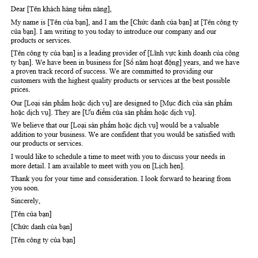 Tiếp theo, trong phần Giới thiệu, bạn nên cung cấp một cái nhìn tổng quan về bản thân hoặc công ty bạn. Ví dụ: “My name is Minh, and I am contacting you from ABC Company.” Đây là cách tuyệt vời để thiết lập mối liên hệ. Phần Nội dung chính sẽ bao gồm thông tin chi tiết về sản phẩm, dịch vụ mà bạn cung cấp cùng với mức giá cụ thể.