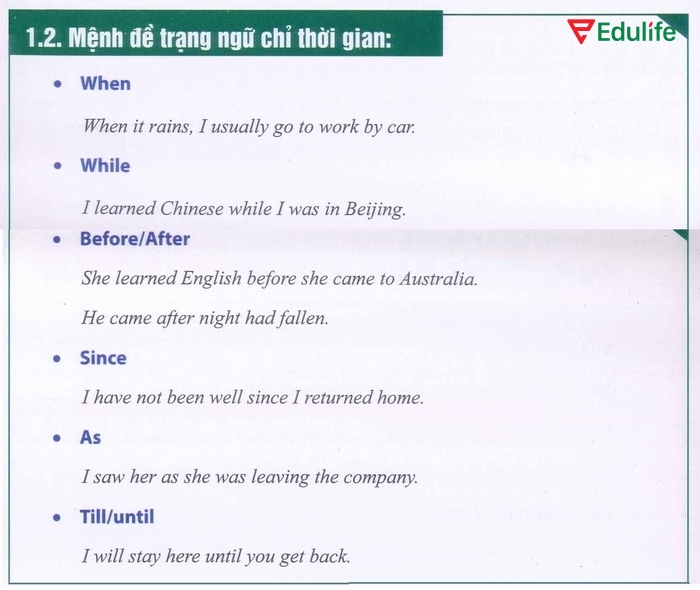 Các mệnh đề này thường bắt đầu bằng những trạng từ như “when,” “while,” “after,” và “before,” cho phép chúng ta biểu thị thời gian một cách rõ ràng. Có thể đặt mệnh đề này ở vị trí đầu câu hoặc cuối câu, tùy thuộc vào cách diễn đạt mà bạn muốn truyền đạt.