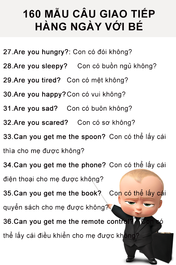 Học tiếng Anh từ những câu đơn giản là một cách hiệu quả để trẻ làm quen với ngôn ngữ này. Những câu như “Be careful!” hay “Don’t touch it!” không chỉ giúp bé hiểu rõ hơn về an toàn mà còn tạo cơ hội cho ba mẹ giao tiếp gần gũi với con. Mỗi khi đọc câu “Time to get up!” hay “Let’s eat slowly!”, trẻ sẽ dần dần hình thành thói quen lắng nghe và phản ứng.