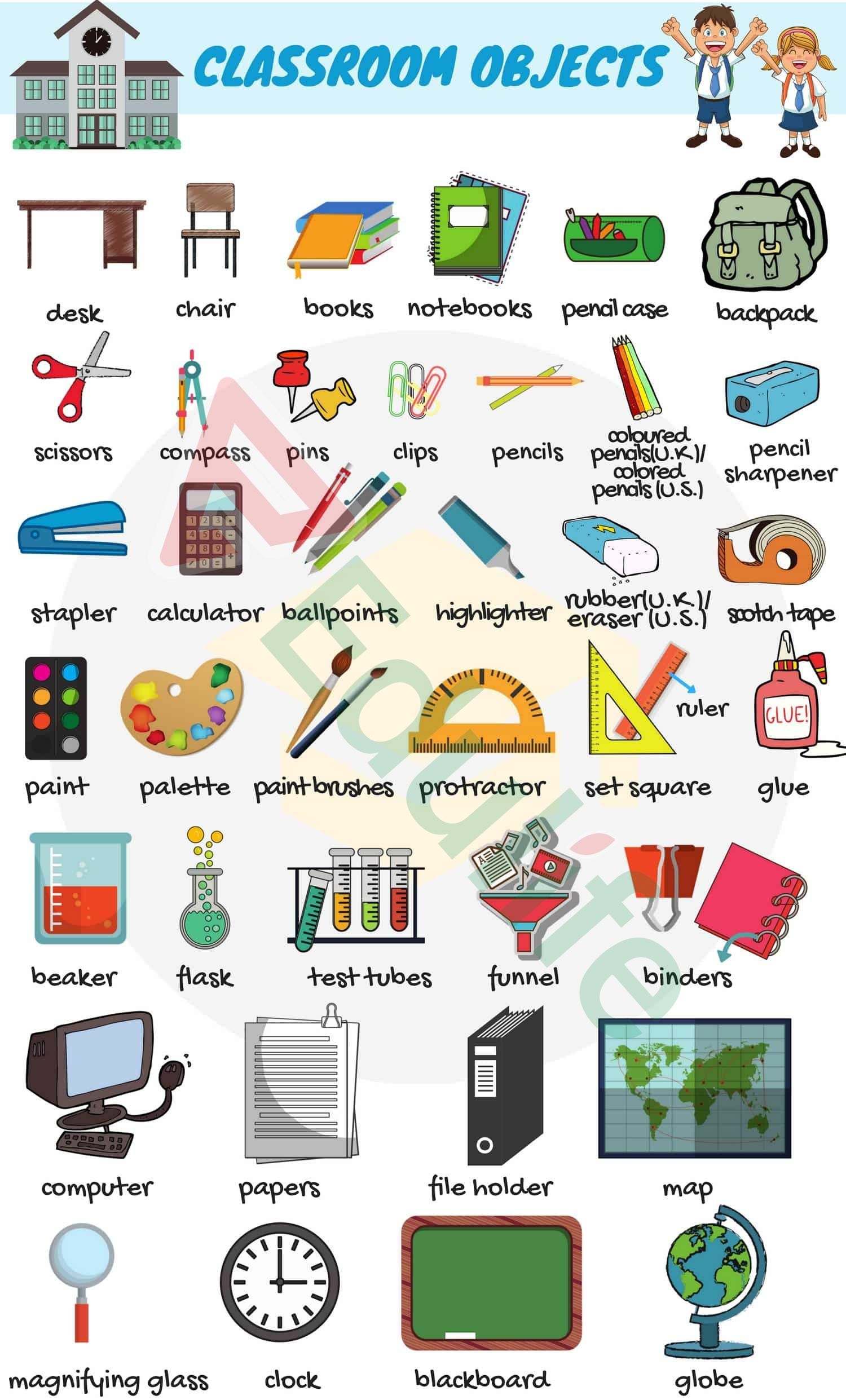 Ngoài ra, những dụng cụ học tập như pen (bút mực), pencil (bút chì), eraser (cục tẩy) và ruler (thước kẻ) cũng được sử dụng hàng ngày. Đây là những vật phẩm mà học sinh cần để hoàn thành bài tập và tham gia các hoạt động học tập.