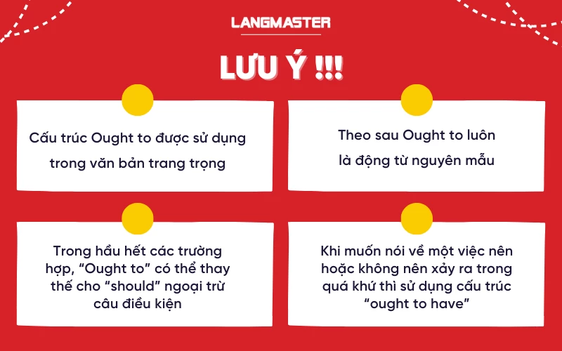 Ngoài ra, cấu trúc này còn được sử dụng để chỉ ra những điều mà người khác lẽ ra nên làm nhưng lại không thực hiện. Chẳng hạn, nếu ai đó bỏ lỡ một cơ hội tốt, ta có thể nói “You ought to have taken that job”, nghĩa là lẽ ra họ nên nhận công việc đó. Như vậy, “ought to” và “ought not to” đóng vai trò quan trọng trong việc diễn đạt quan điểm, ý kiến và lời khuyên.