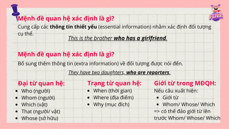 Trong tiếng Anh, mệnh đề xác định và mệnh đề không xác…