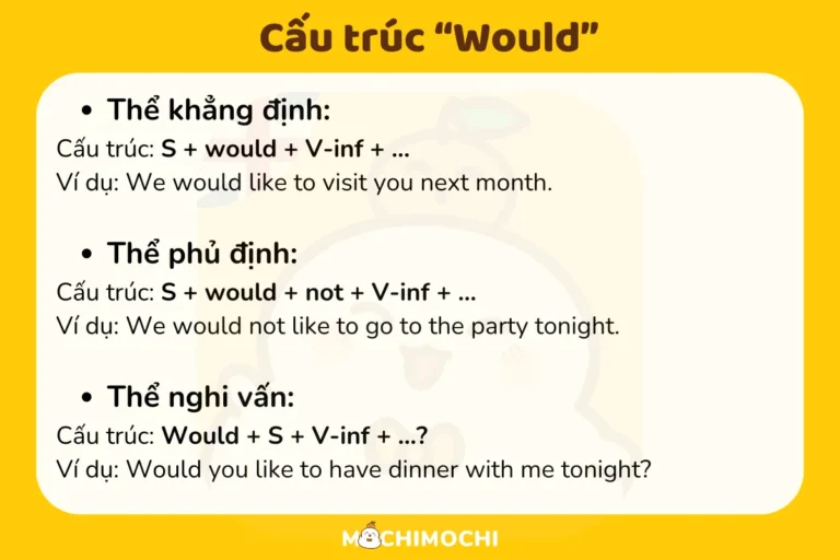 Trong tiếng Anh, “would” là một trong những động từ khuyết thiếu…
