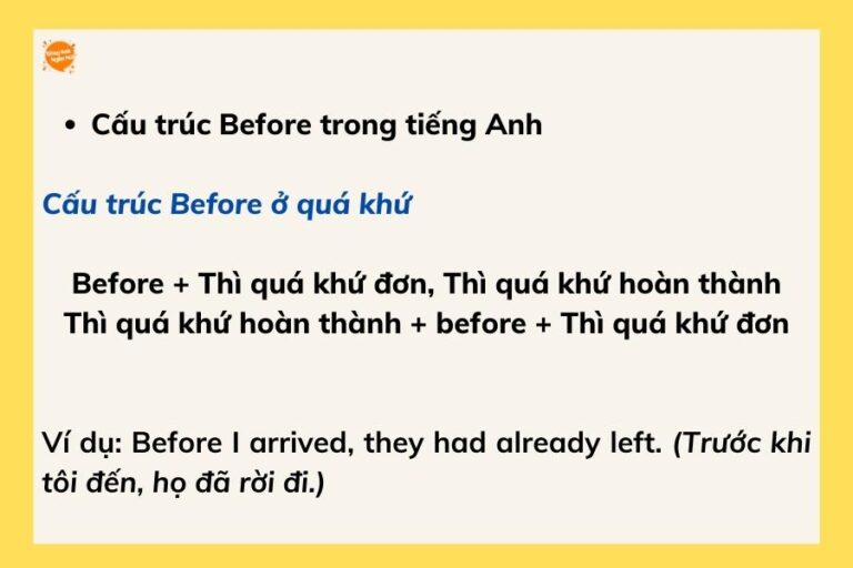 Trong tiếng Anh, “before” là một liên từ, giới từ hoặc trạng…