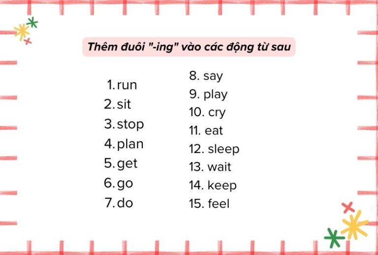 Trong tiếng Anh, việc thêm đuôi “ing” vào động từ là một…