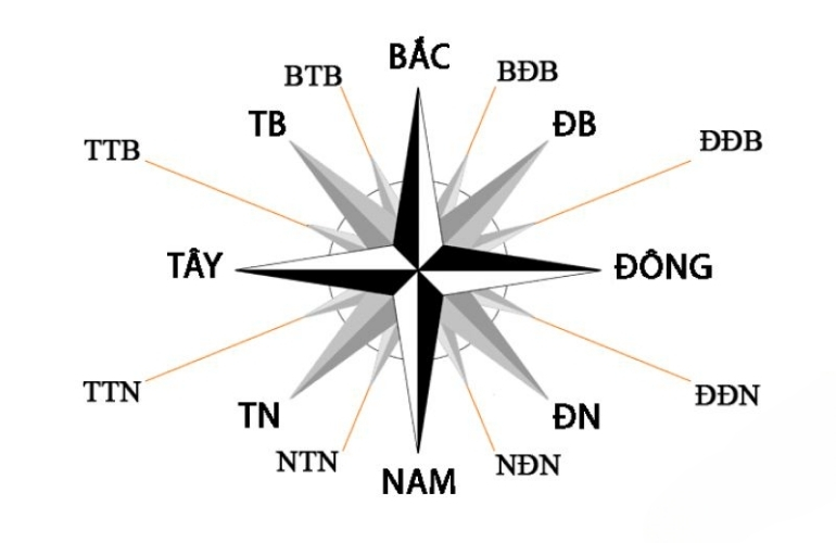 Hướng Bắc nằm trước mặt bạn, trong khi hướng Nam sẽ ở phía sau. Ngoài bốn hướng chính, còn có các hướng phụ như Đông Bắc, Đông Nam, Tây Nam và Tây Bắc. Những hướng này có thể được xác định khi bạn đã nắm vững các hướng cơ bản.