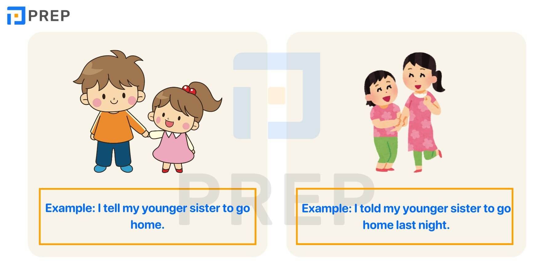 Khi nói về một câu sử dụng “tell”, ví dụ như “Did she tell you her name?” (Cô ấy đã nói với bạn tên của mình à?), “told” thể hiện một hành động rõ ràng, dễ hiểu và dễ sử dụng. Một trong những ví dụ khác là “He told the news to everybody he saw” (Anh ấy đã nói tin tức cho mọi người mà anh ấy gặp).