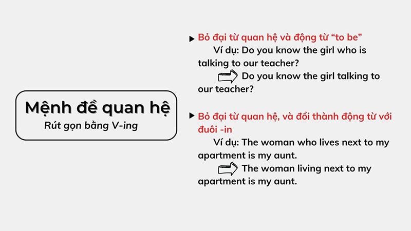 Ngoài ra, rút gọn mệnh đề danh từ bằng cách sử dụng động từ -ing cũng rất phổ biến. Một ví dụ là “I enjoy that you came,” có thể biến thành “I enjoy you coming.” Những mẹo nhỏ này giúp tăng tính linh hoạt trong giao tiếp hàng ngày.