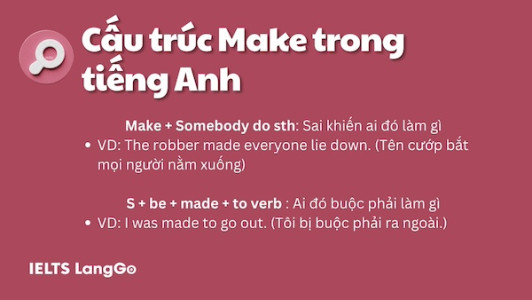 Ngược lại, khi chúng ta gặp cấu trúc “be made,” thì theo sau sẽ là “to V,” dẫn đến nghĩa rằng ai đó bị bắt làm điều gì đó. Ví dụ, “I was made to finish my homework” có nghĩa là tôi bị buộc phải hoàn thành bài tập về nhà. Cấu trúc này thường xuất hiện trong các câu bị động.