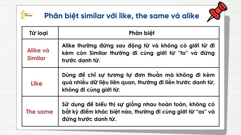 Ngoài ra, khi học tiếng Anh, chúng ta cũng cần phân biệt giữa “similar,” “like,” “alike,” và “the same.” Mặc dù tất cả đều nói về sự giống nhau, nhưng mỗi từ mang đến những sắc thái khác nhau. Sự tinh tế trong việc lựa chọn từ ngữ này sẽ giúp bạn giao tiếp một cách tự nhiên và chính xác hơn trong tiếng Anh.