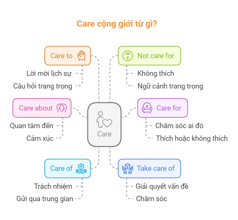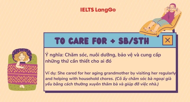 Điểm đáng lưu ý là “take care of” không bao giờ đi cùng với “for” hay “to”. Thay vào đó, nó tập trung vào việc thể hiện hành động chăm sóc hoặc lo liệu cho ai đó một cách có trách nhiệm.
