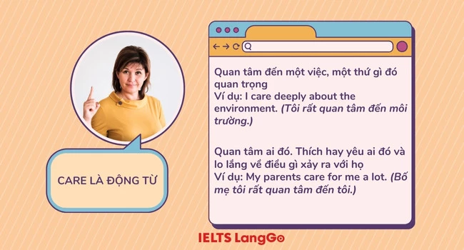 Chúng ta cũng thường nghe câu: “She takes care of her younger brother while their parents are at work.” Ý của câu này là cô ấy đang lo liệu cho em trai trong khi bố mẹ vắng nhà. Có thể thấy, “take care of” không chỉ là một cụm từ thông dụng trong tiếng Anh mà còn mang một khía cạnh tình cảm rất sâu sắc.
