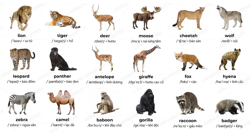 Trong tiếng Anh, tên các loài động vật là một phần quan trọng giúp chúng ta mở rộng vốn từ vựng và giao tiếp hiệu quả hơn trong học tập, công việc cũng như cuộc sống hàng ngày. Việc nắm vững tên các con vật bằng tiếng Anh không chỉ giúp bạn dễ dàng nhận biết các loài động vật mà còn hữu ích khi xem phim, đọc sách, tra cứu tài liệu nước ngoài hay trò chuyện với bạn bè quốc tế. Bài viết dưới đây sẽ tổng hợp chi tiết danh sách tên các con vật bằng tiếng Anh phổ biến, giúp bạn học và ghi nhớ dễ dàng hơn.