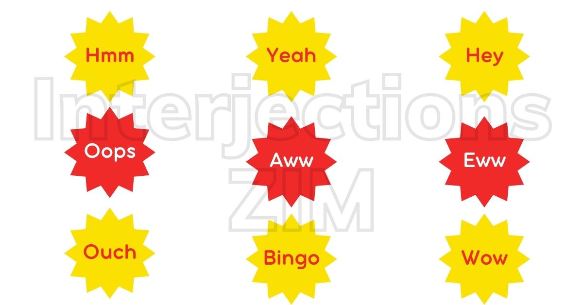 Một số thán từ phổ biến như “Hey!” dùng để chào hỏi hoặc thu hút người khác chú ý, hay “Ah!” thể hiện sự nhận ra điều gì đó. Thán từ như “Alas!” bộc lộ sự thương hại, và “Eh?” có thể được sử dụng để nhấn mạnh một câu hỏi hoặc bày tỏ sự không chắc chắn về điều gì đó.