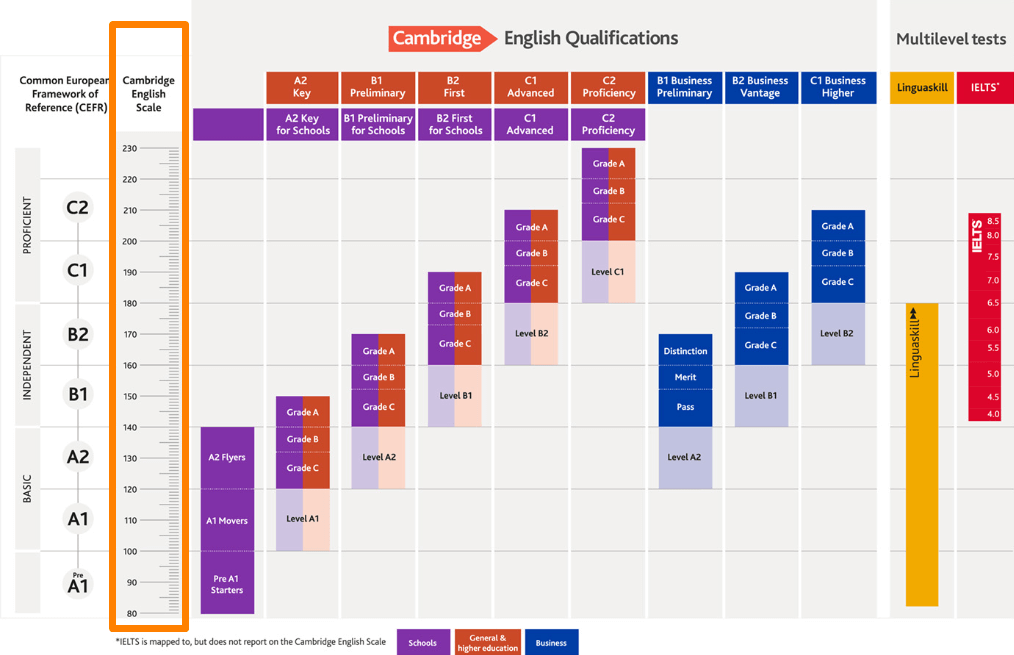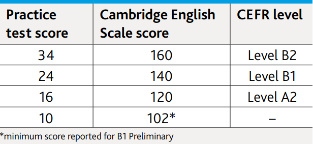 Mọi thí sinh sẽ được chấm điểm cho bốn kỹ năng: nghe, nói, đọc và viết, mỗi kỹ năng tối đa 25 điểm. Để đạt chứng chỉ B1, thí sinh cần có điểm trung bình từ 4.0 đến 5.5. Nếu điểm của bạn là 5.0 cho nghe, 6.5 cho đọc, 6.0 cho viết, và 6.5 cho nói, điểm trung bình của bạn sẽ là 6.0, tương đương với trình độ B2, cho thấy bạn có khả năng sử dụng tiếng Anh tốt hơn.