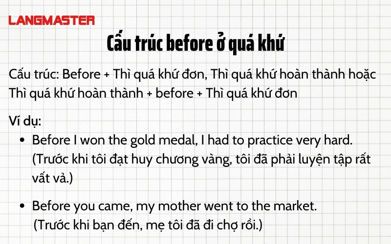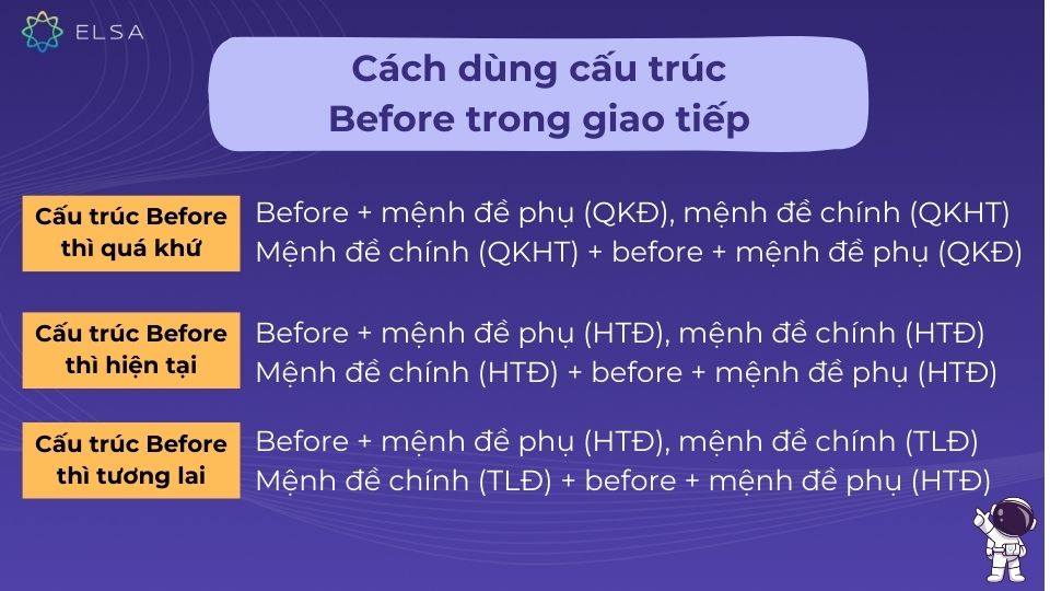 Ngoài ra, khi dùng “before” như một giới từ, hãy đảm bảo rằng bạn theo sau nó bằng một danh từ hoặc cụm danh từ chỉ thời gian, hoặc địa điểm. Như vậy, câu văn sẽ trở nên dễ tiếp thu hơn. Cuối cùng, nhớ rằng mục đích của việc dùng các cụm từ này là để truyền đạt ý tưởng một cách mạch lạc và súc tích nhất có thể.