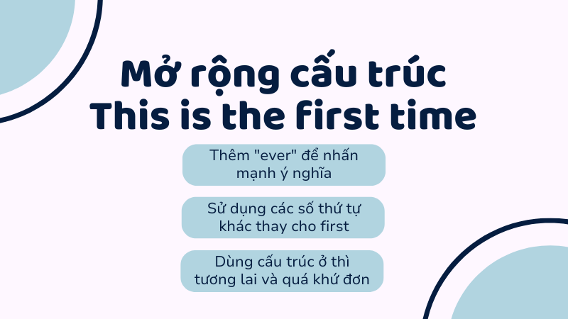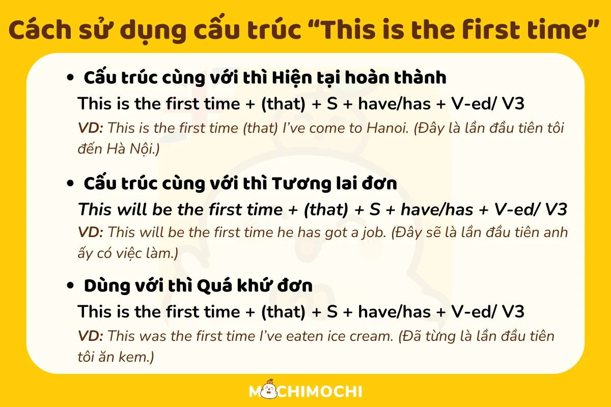 Cấu trúc “This is the first time” hay “It is the first time” mang ý nghĩa là “đây là lần đầu tiên…” và thường được dùng để diễn tả trải nghiệm lần đầu làm điều gì đó. Đây là một cụm từ cố định rất hữu ích trong giao tiếp hàng ngày cũng như khi viết.