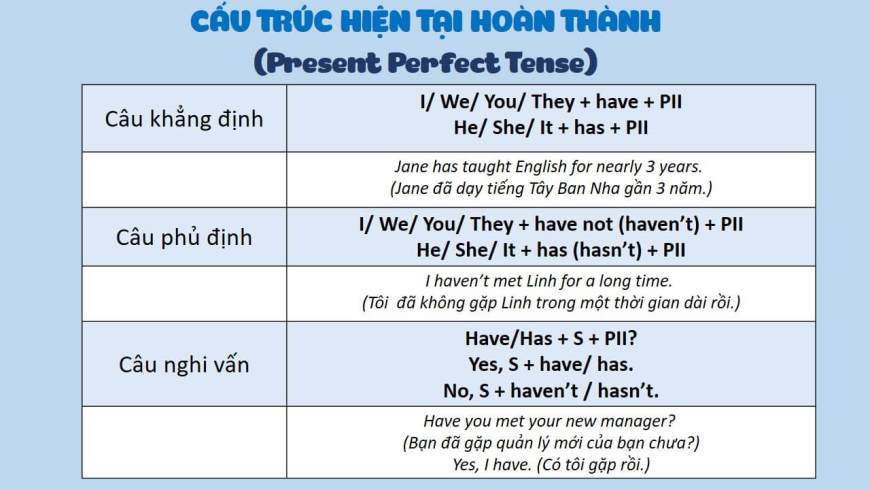 Việc nắm rõ cấu trúc “S + has/have + Vp2” cùng với các dấu hiệu này sẽ giúp các bạn tự tin hơn khi sử dụng thì hiện tại hoàn thành trong giao tiếp hàng ngày. Hãy luyện tập thường xuyên để tiếng Anh của mình ngày càng hoàn thiện nhé!
