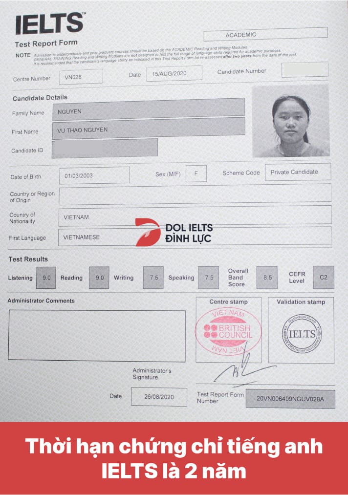 Ngoài ra, lưu ý rằng giấy chứng nhận IELTS có thời hạn 2 năm kể từ ngày cấp. Sau thời gian này, nếu bạn cần chứng chỉ mới, bạn sẽ phải tham gia thi lại. Điều này giúp các tổ chức quốc tế luôn có được thông tin cập nhật và chính xác nhất về khả năng ngôn ngữ của bạn. Vậy nên, hãy chú ý đến thời hạn của chứng chỉ nhé!