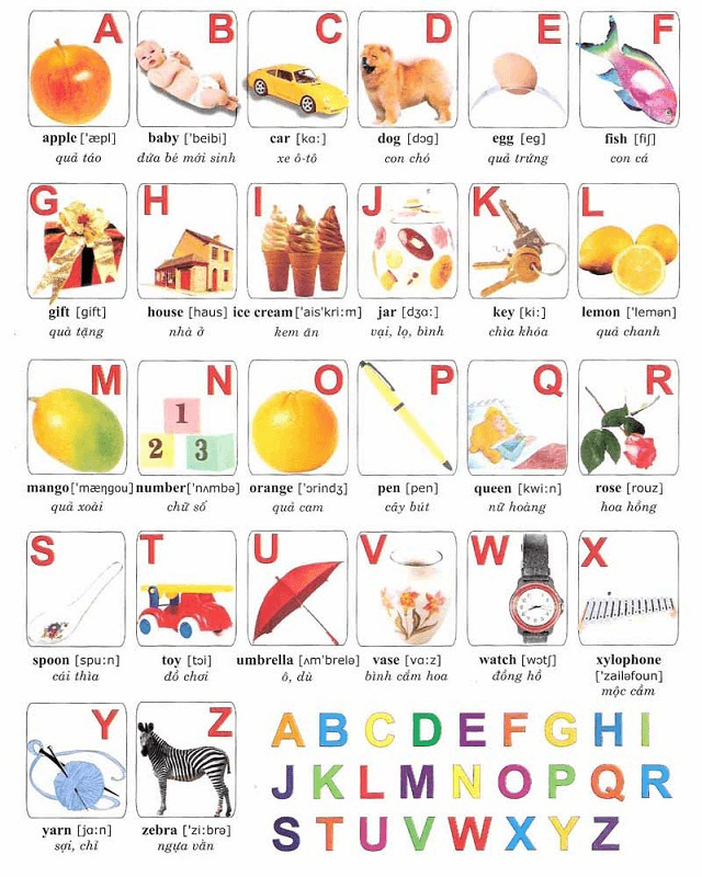 Bên cạnh đó, bảng chữ cái cũng là một phần quan trọng trong việc học tiếng Anh. Ba mẹ có thể kết hợp học bảng chữ cái với việc hát các bài hát vui nhộn để bé hứng thú hơn. Âm thanh vui tươi sẽ khiến bé dễ tiếp thu và ghi nhớ hơn.