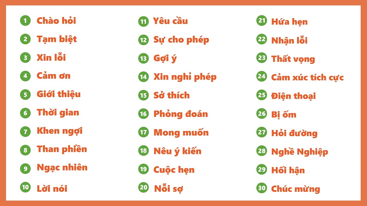 Nắm vững các mẫu câu giao tiếp cơ bản theo chủ đề như gia đình, thời gian hay mua sắm sẽ giúp bạn mở rộng vốn từ và tự tin hơn trong các tình huống hàng ngày. Hãy thường xuyên luyện tập để nâng cao kỹ năng để không bỏ lỡ cơ hội giao tiếp hiệu quả trong công việc nhé!