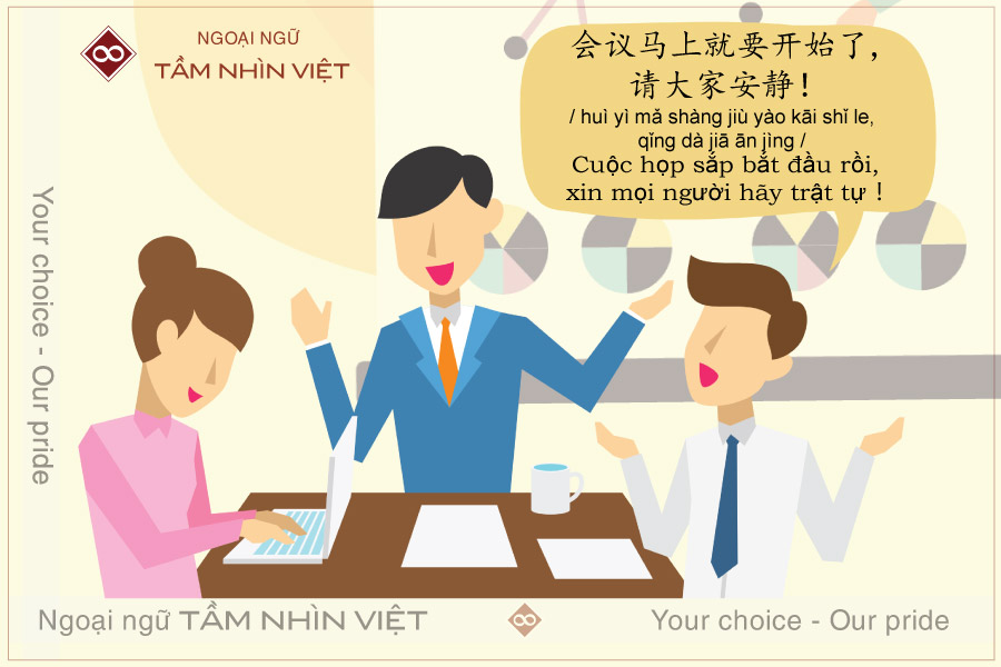Khi bạn tham gia vào một cuộc họp, câu “我们现在开会,请大家来到会议室。” (Wǒmen xiànzài kāihuì, qǐng dàjiā lái dào huìyì shì) sẽ giúp bạn đưa mọi người vào quỹ đạo cần thiết. Và khi đến muộn, hãy nhớ nói “我来晚了,真抱歉。” (Wǒ lái wǎn le, zhēn bàoqiàn) để thể hiện sự lịch sự.