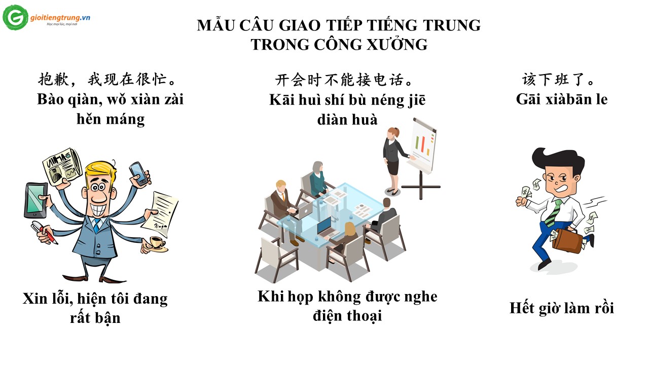 Học tiếng Trung giao tiếp trong công việc là một kỹ năng rất quan trọng, đặc biệt trong môi trường công ty hay nhà xưởng. Để theo kịp yêu cầu công việc hiện đại, việc nắm vững 50 câu giao tiếp cơ bản là điều cần thiết. Những câu như “你忙吗?” (Bạn có bận không?) hay “请稍等一下。” (Xin hãy chờ một chút) sẽ giúp bạn dễ dàng tương tác với đồng nghiệp và cấp trên.