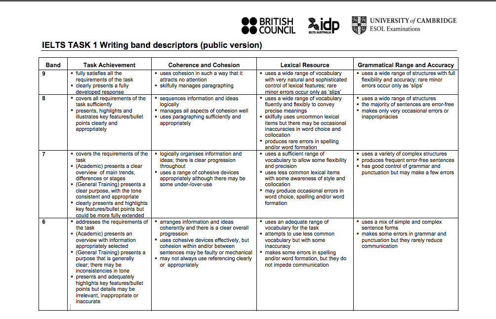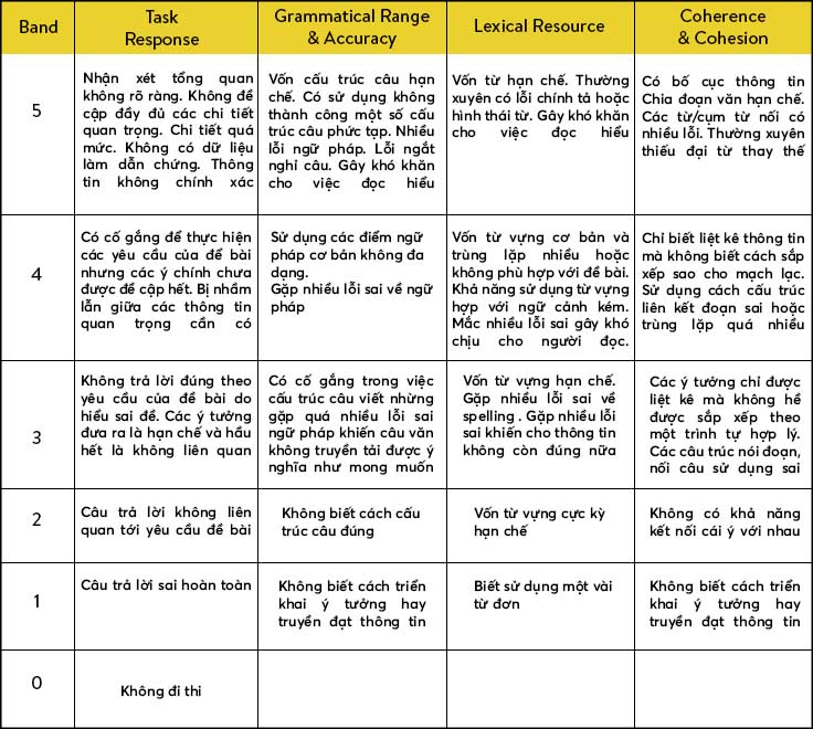 Tiêu chí đánh giá bài thi viết IELTS chi tiết