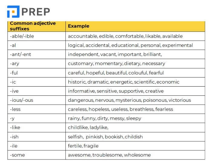Ngoài ra, có rất nhiều đuôi tính từ khác như -able/-ible, -ful, -y hay -ous. Đuôi -able, chẳng hạn, được sử dụng để mô tả khả năng, như “readable” (có thể đọc được) hoặc “visible” (có thể nhìn thấy). Đuôi -ful thì thể hiện sự phong phú, như trong từ “beautiful” (xinh đẹp).