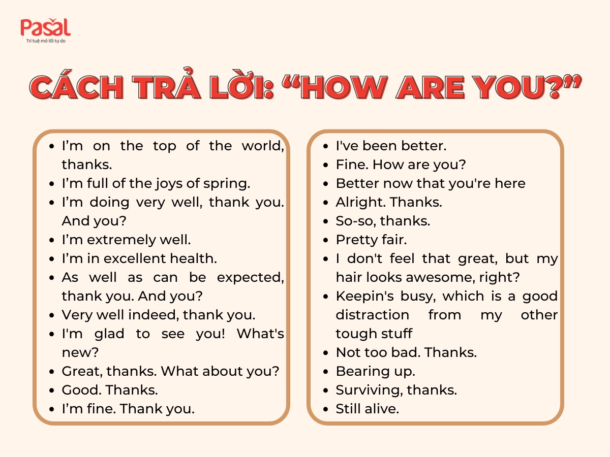 Giao tiếp tiếng Anh hàng ngày thường bắt đầu bằng những câu hỏi đơn giản nhưng rất quan trọng. Khi được hỏi “How are you today?” (Bạn khỏe không?), một câu trả lời thân thiện như “I’m good, thank you. How about you?” (Mình thì khỏe, cảm ơn bạn. Còn bạn thì sao?) không chỉ thể hiện sự quan tâm mà còn mở ra cơ hội cho cuộc trò chuyện tiếp theo.