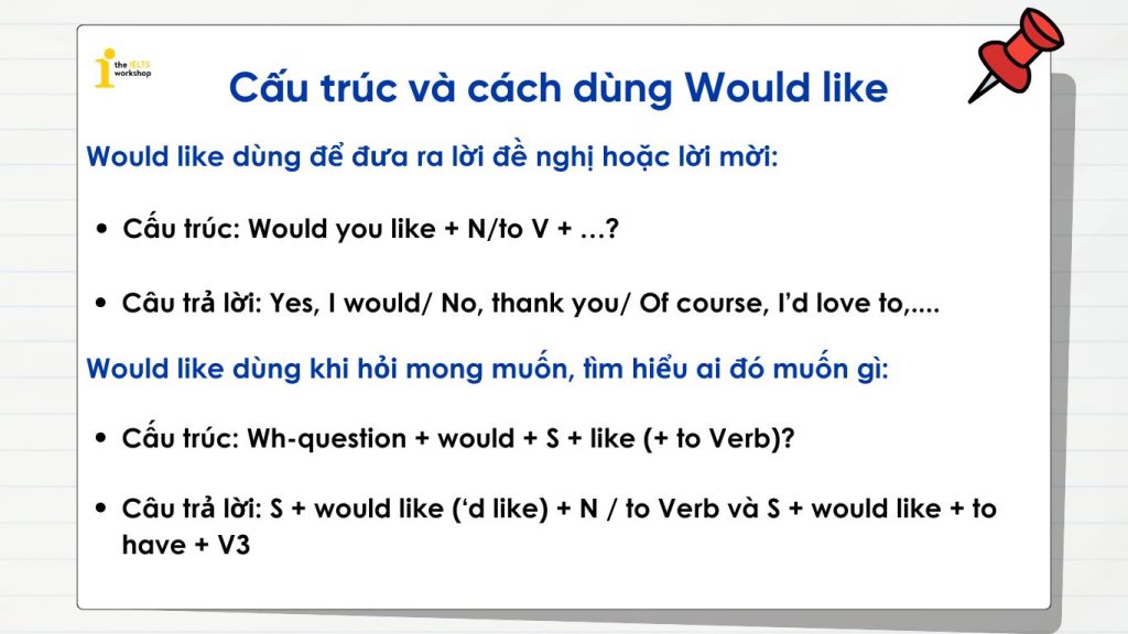 Trong giao tiếp tiếng Anh hàng ngày, “Would you like” là một cấu trúc phổ biến được sử dụng để đưa ra lời mời hoặc đề xuất một cách lịch sự. Tuy nhiên, không phải ai cũng biết cách trả lời cho phù hợp với ngữ cảnh cũng như mức độ thân mật trong giao tiếp. Bài viết này sẽ tổng hợp đầy đủ các cách trả lời câu hỏi “Would you like”, từ mẫu câu cơ bản, cách dùng, hướng dẫn chi tiết cho tới các ví dụ thực tế. Qua đó, bạn sẽ dễ dàng lựa chọn cách phản hồi tự nhiên và chính xác nhất trong từng tình huống.