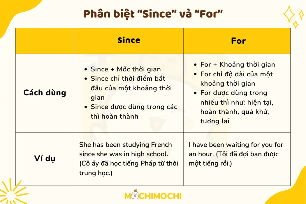 Ngoài ra, nếu bạn so sánh “since” với “for,” bạn sẽ thấy rằng “since” thường chỉ một thời điểm cụ thể, trong khi “for” lại thường được dùng để chỉ khoảng thời gian. Việc nắm vững cách sử dụng “since” sẽ giúp bạn diễn đạt ý tưởng một cách chính xác và tự nhiên hơn trong giao tiếp hàng ngày.