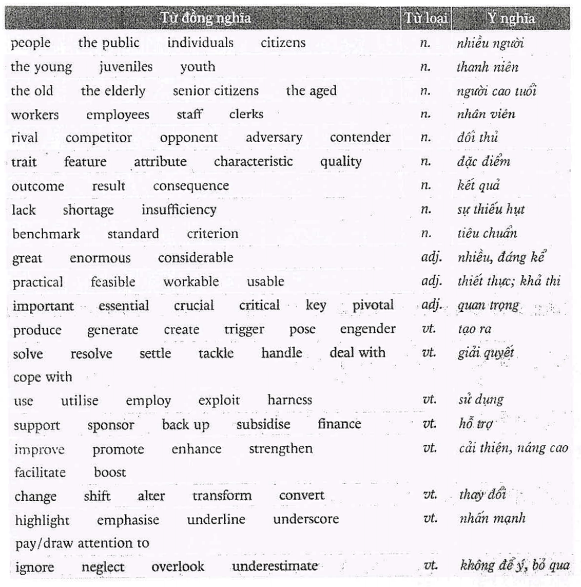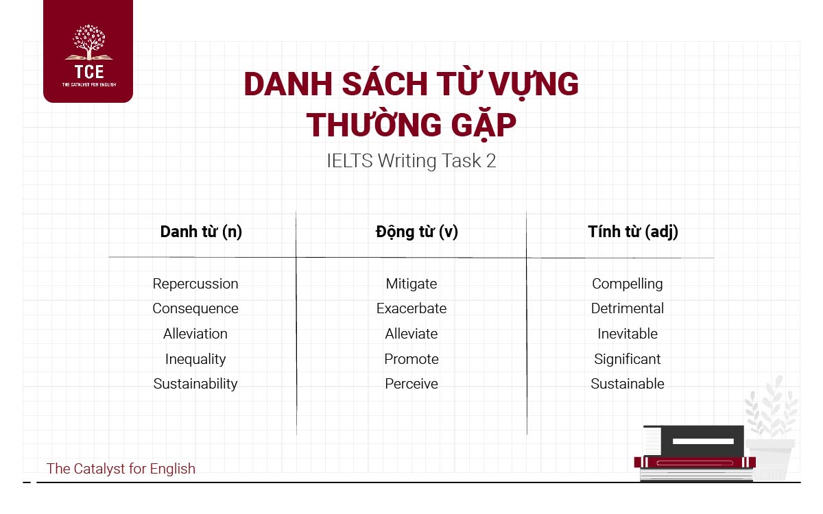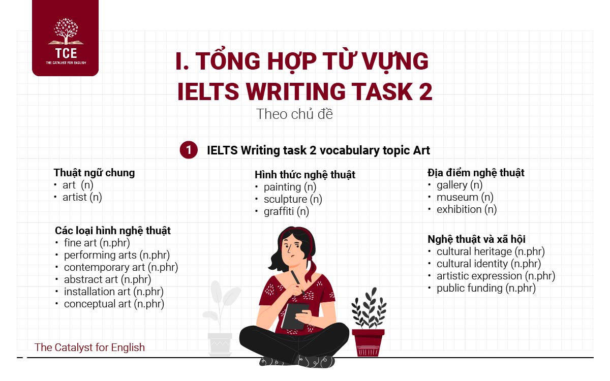 Khi luyện thi IELTS Writing Task 2, từ vựng luôn đóng vai trò vô cùng quan trọng, quyết định trực tiếp tới điểm số của thí sinh. Ngoài việc nắm vững cấu trúc bài luận và các kỹ năng lập luận, người học cần trang bị cho mình một lượng từ vựng đa dạng, chính xác và phù hợp với từng chủ đề viết. Việc sử dụng những từ vựng hay, collocation, idiom, cũng như các cách diễn đạt paraphrase linh hoạt sẽ giúp bài viết trở nên ấn tượng, chuyên nghiệp và đạt band điểm cao. Dưới đây là tổng hợp các nhóm từ vựng cần thiết cho IELTS Writing Task 2.